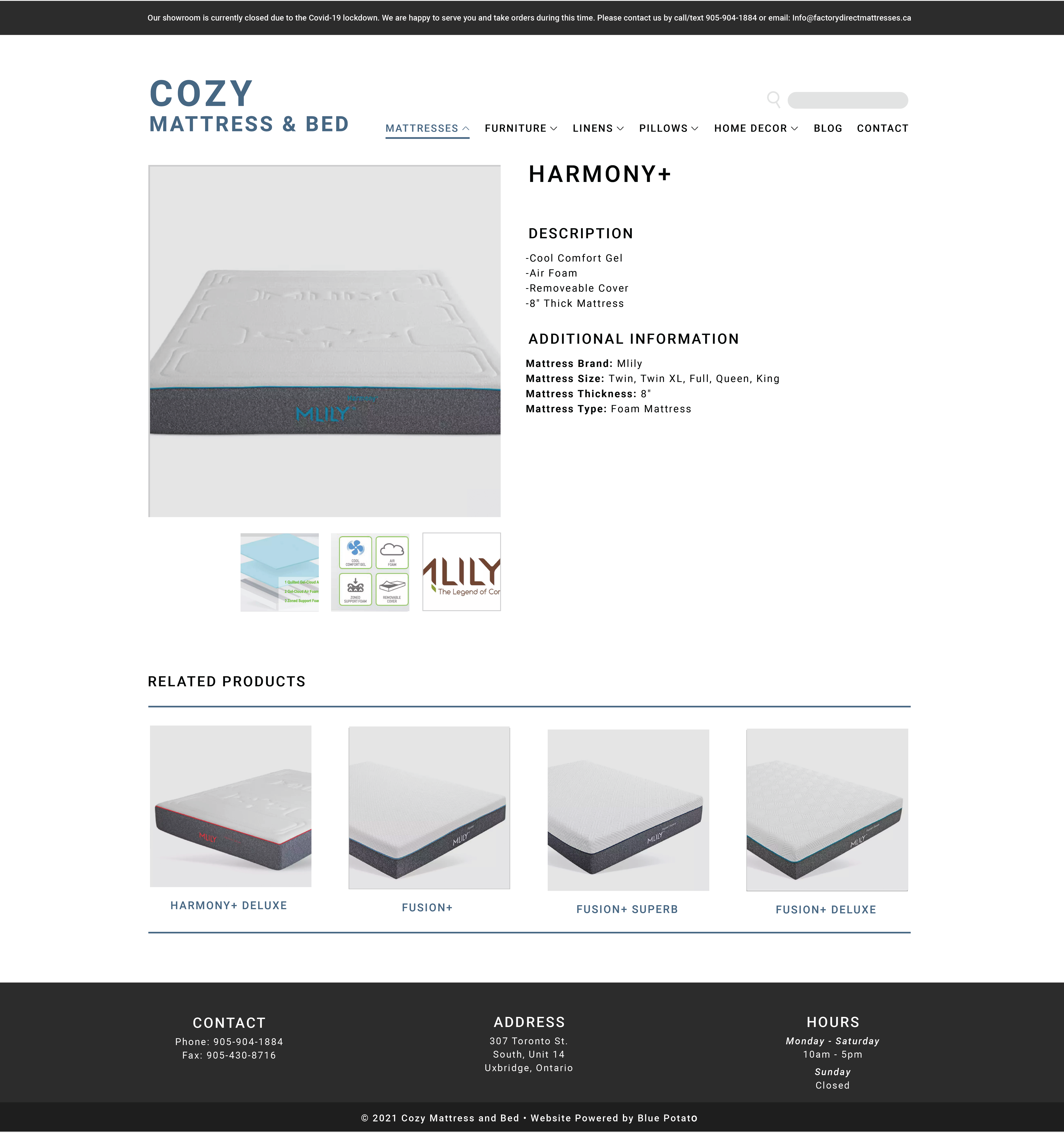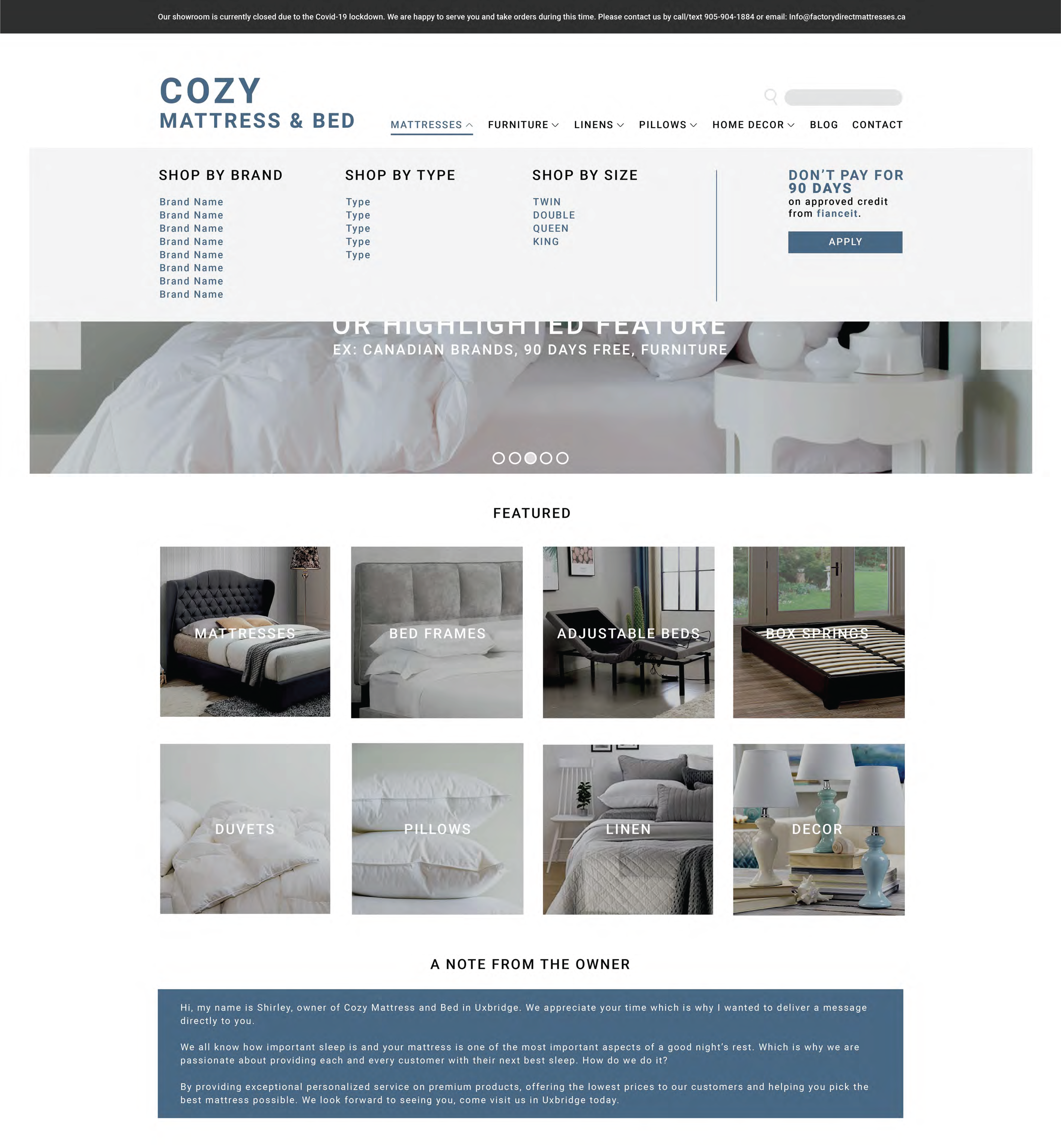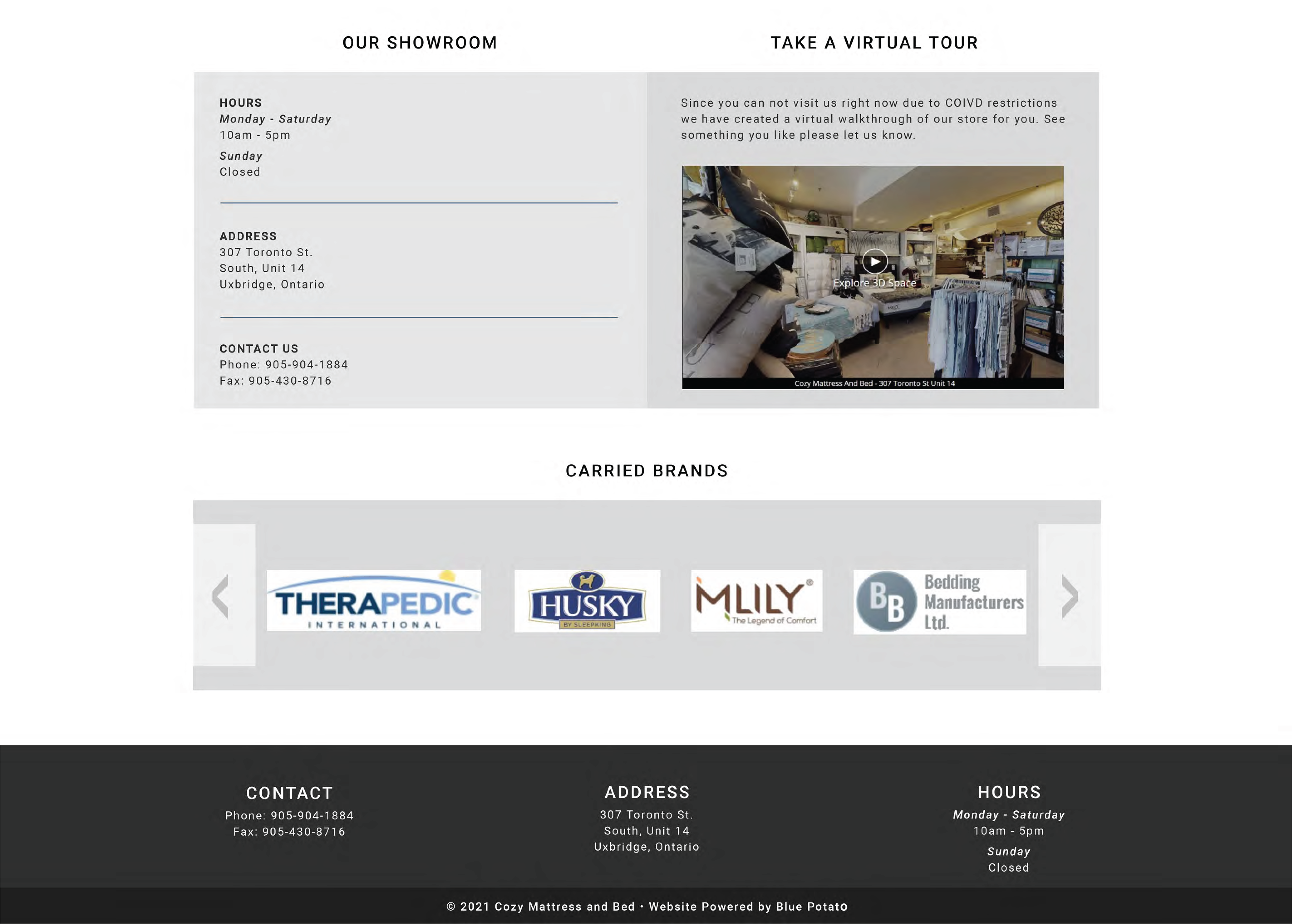 A live website designed for a high-end mattress boutique using wordpress.
